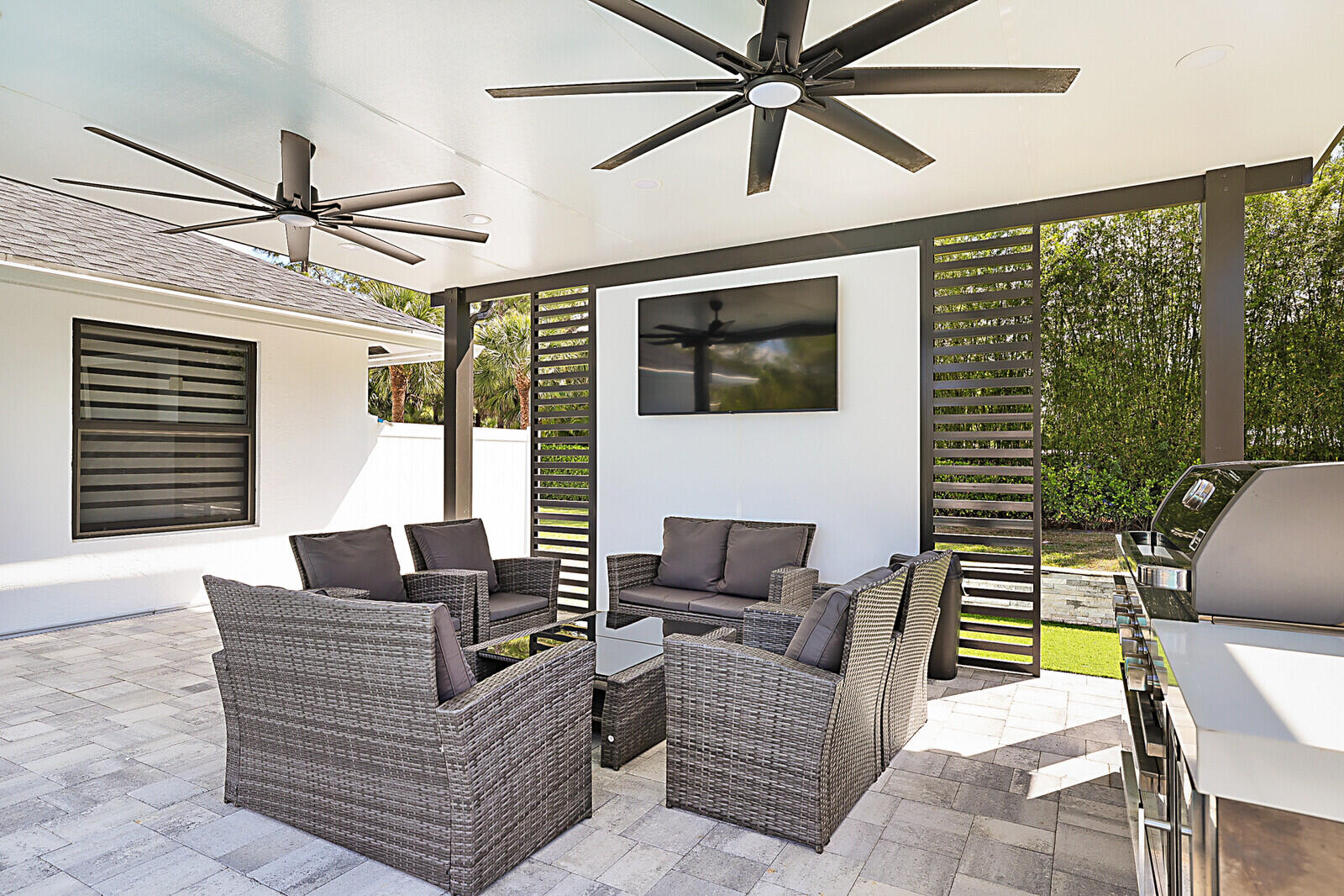 SPECIALTY PROPERTY! ONE-OF-A-KIND POOL HOME on a spacious 1.7-acre lot offers the perfect blend of indoor comfort and outdoor living. This 3-bedroom, 2-bathroom home features a 2024 roof, impact windows and doors, and an open-concept layout with vaulted ceilings. The modern kitchen includes quartz waterfall countertops, updated appliances, ample cabinetry, and recessed lighting. Both bathrooms have been tastefully updated with contemporary finishes. Step outside to a private oasis with a heated saltwater pool (2021), expansive pool deck, and designated entertainment area. There is an attached 2-car garage PLUS there is a detached 3-car garage ideal for boats, RVs, motorcycles, more storage and flex space. The extra poured concrete extends the driveway throughout the property. So MUCH MORE