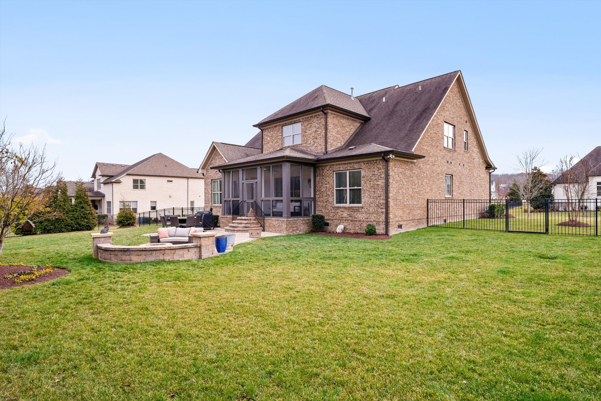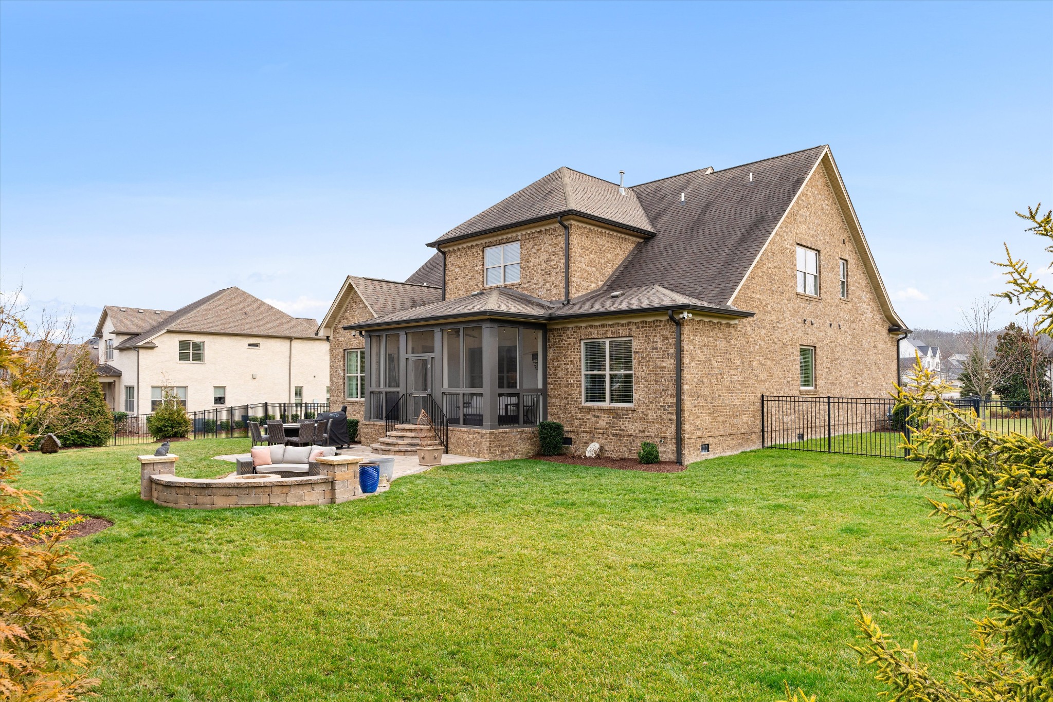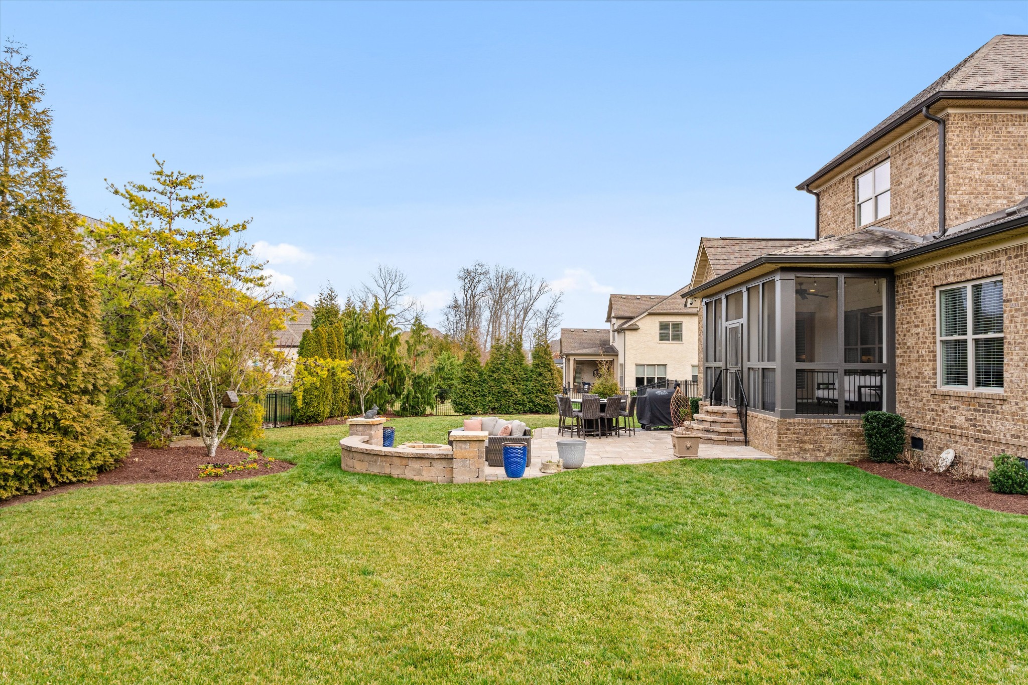 Exceptional storage is found throughout with generously sized closets designed for modern living. Outdoors, a newly screened patio extends the living space, while an additional patio with fire pit creates the perfect setting for year round evenings under the stars. The nicely landscaped yard features wireless irrigation, French drains, full fencing, and added privacy trees for both beauty and ease.
