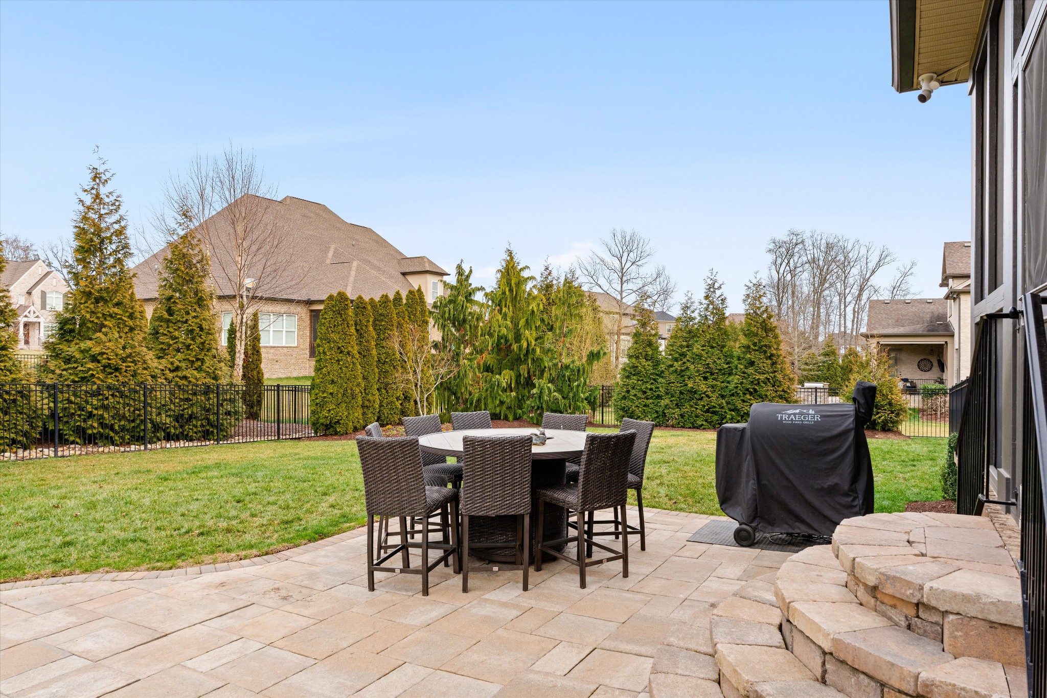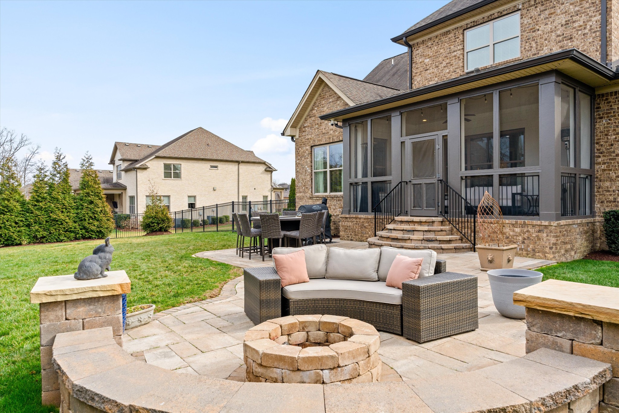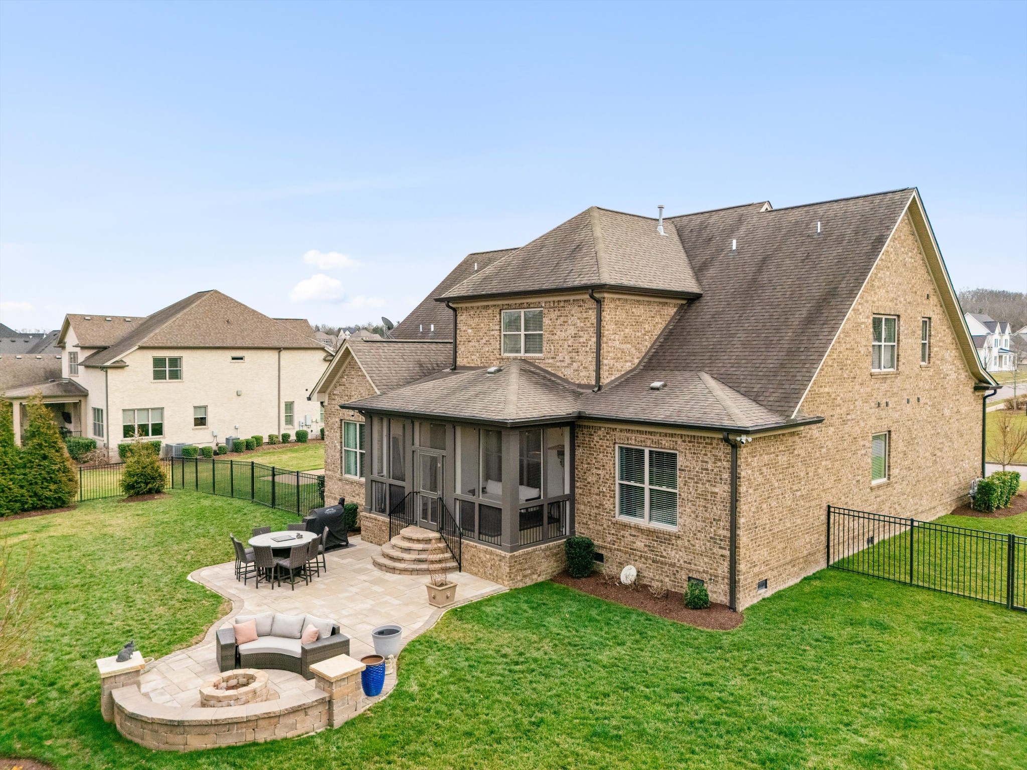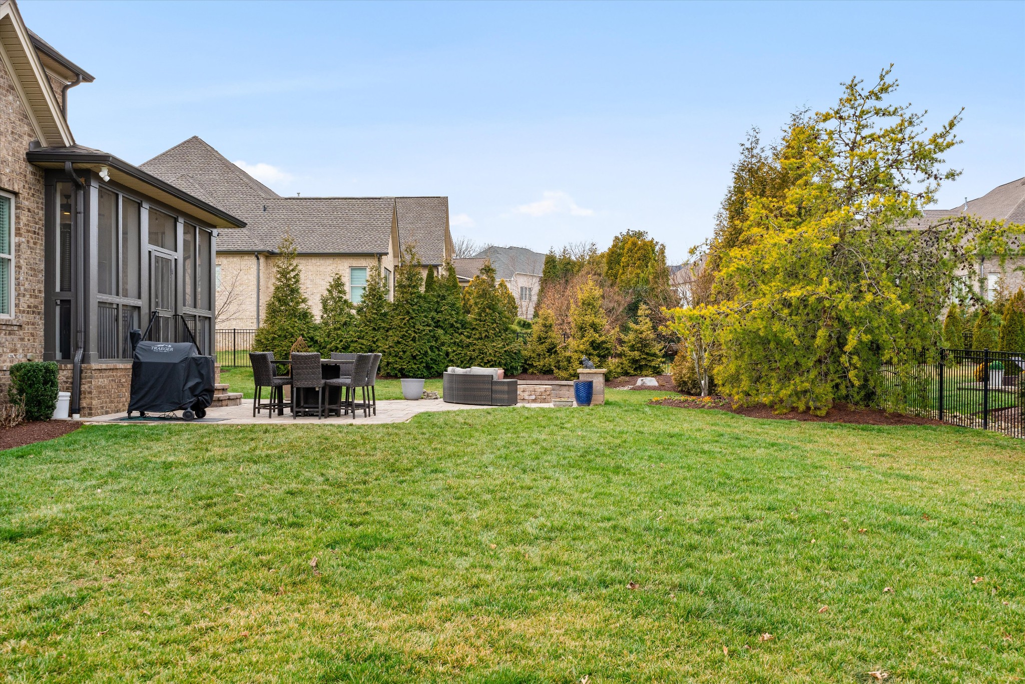 Exceptional storage is found throughout with generously sized closets designed for modern living. Outdoors, a newly screened patio extends the living space, while an additional patio with fire pit creates the perfect setting for year round evenings under the stars. The nicely landscaped yard features wireless irrigation, French drains, full fencing, and added privacy trees for both beauty and ease.