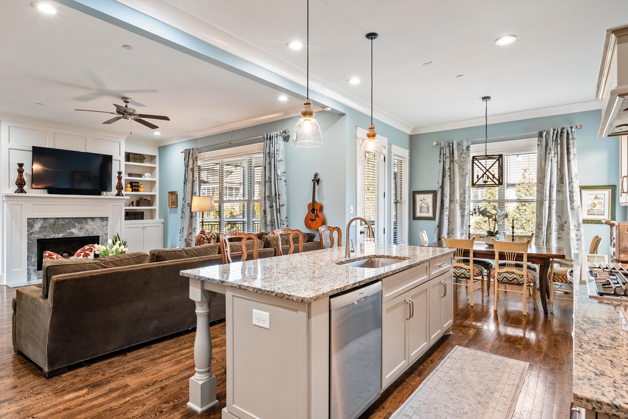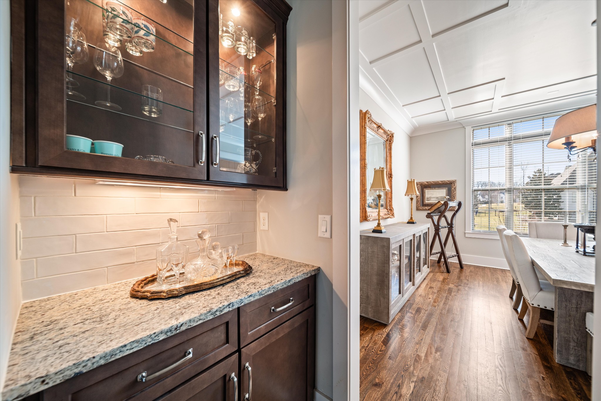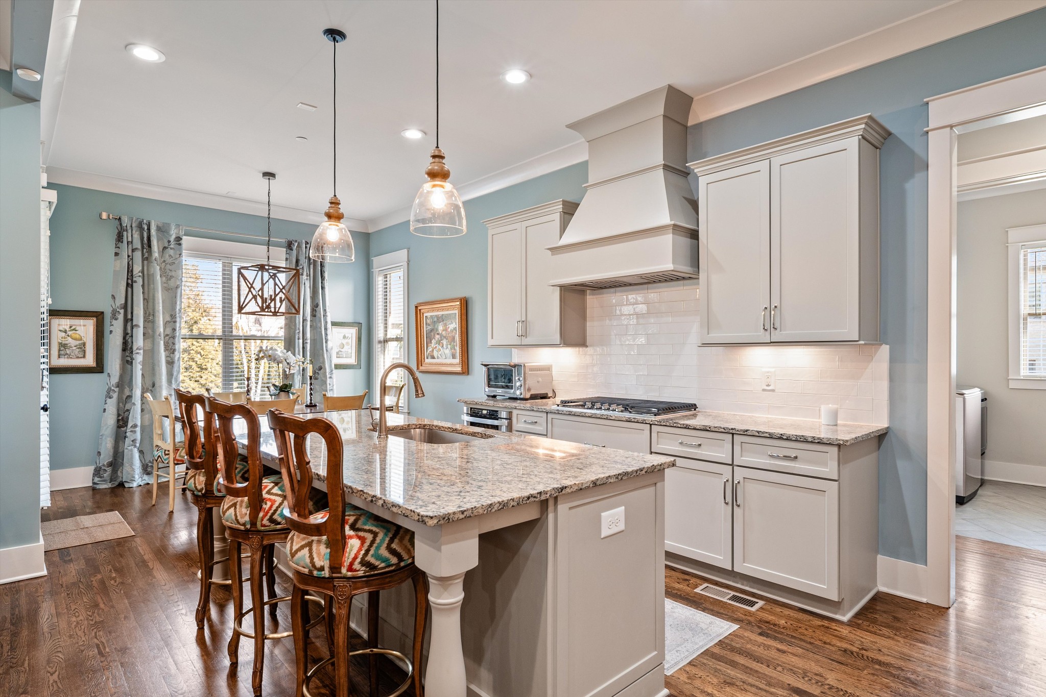 The main level primary suite offers everyday convenience with a sense of quiet retreat. The open concept family room flows seamlessly into the kitchen and breakfast nook, creating an inviting backdrop for both relaxed living and elevated entertaining. A separate formal dining room with serving bar adds a layer of sophistication for memorable gatherings.